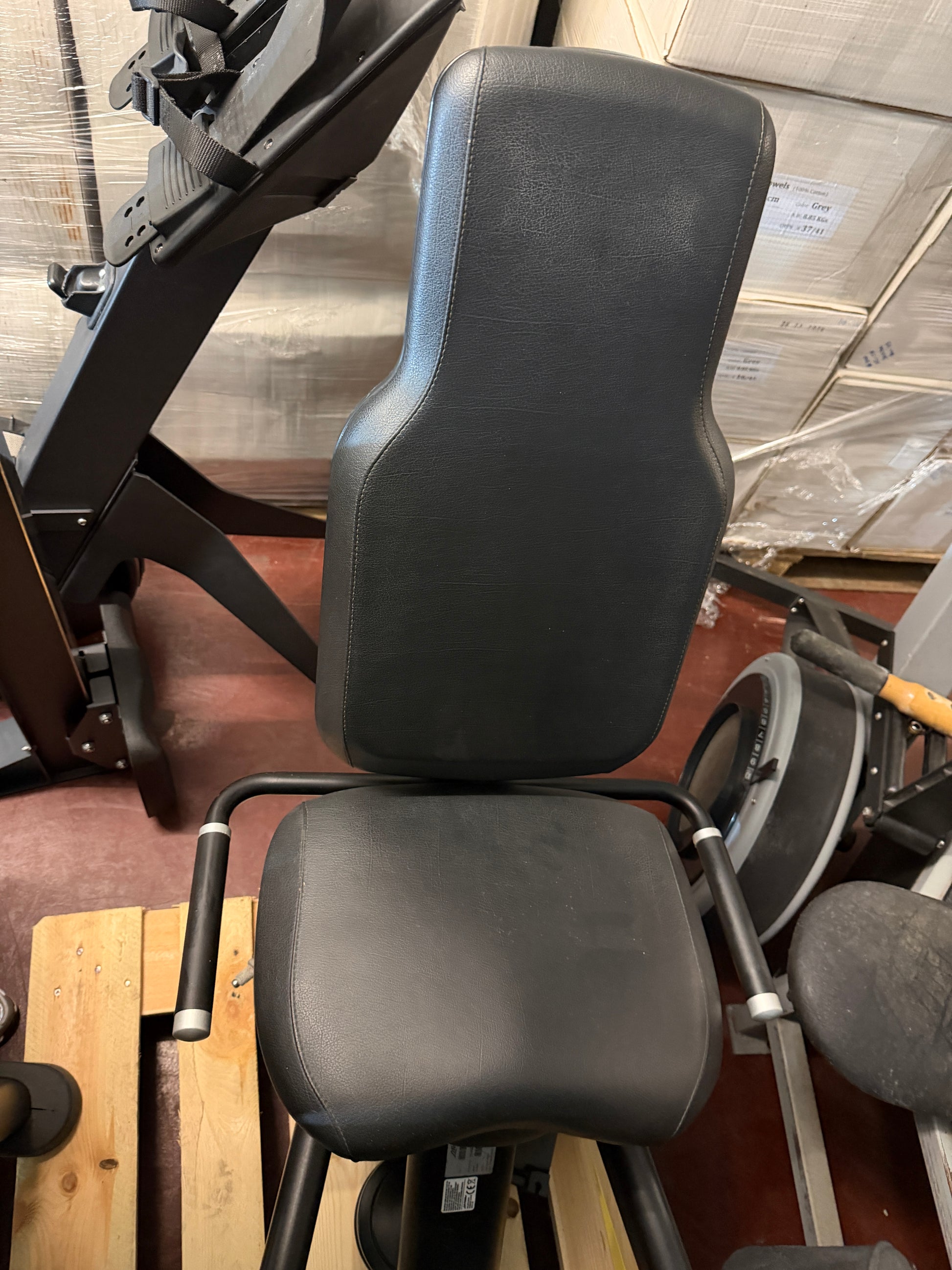 Kraftgerät zur Kräftigung der äusseren Oberschenkelmuskulatur (Abduktoren). Die Bewegung erfolgt von innen nach aussen. Sitz- und Rückenpolster in gutem Zustand, Gewichtsblock vollständig und leichtgängig. Optisch und technisch gepflegt, voll funktionsfähig – ideal für Fitnessstudio oder Reha-Bereich.