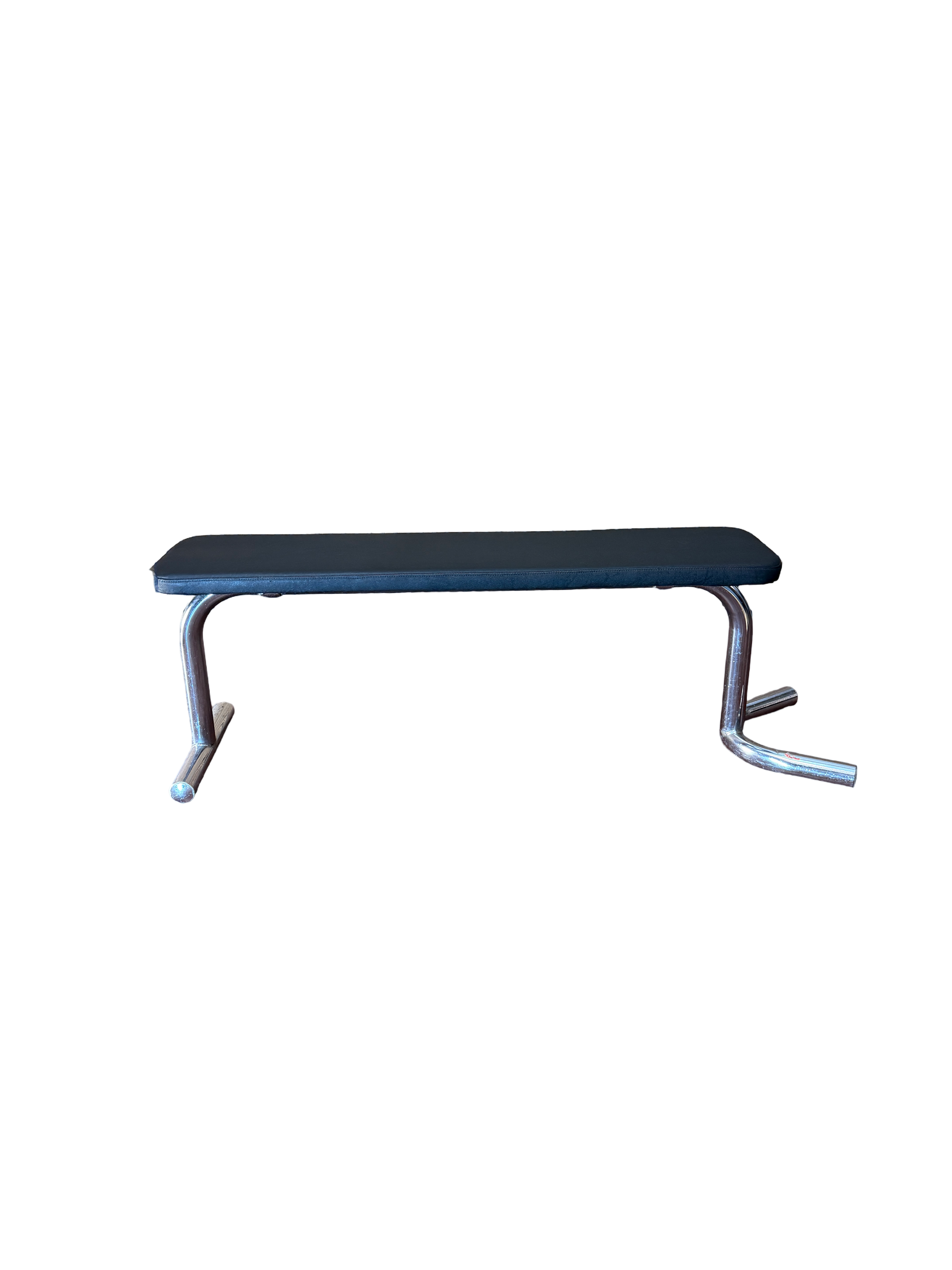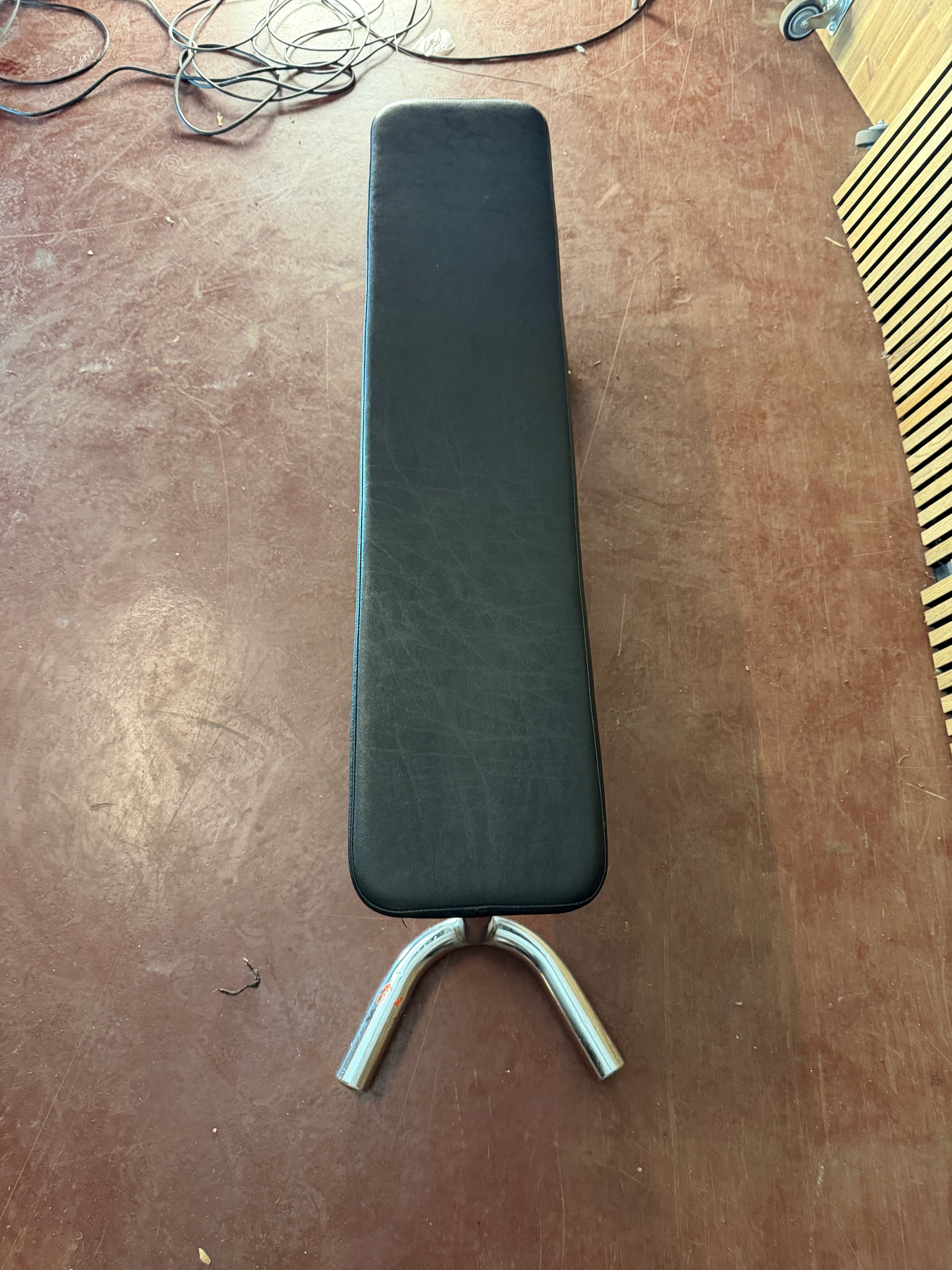 Stabile Flachbank mit verchromtem Stahlgestell und gepolsterter Liegefläche. Ideal für Freihanteltraining und Übungen mit dem eigenen Körpergewicht. Das Polster ist in gutem Zustand, das Gestell zeigt leichte Gebrauchsspuren. Robust, standsicher und sofort einsatzbereit – perfekt für Fitnessstudio oder Homegym.