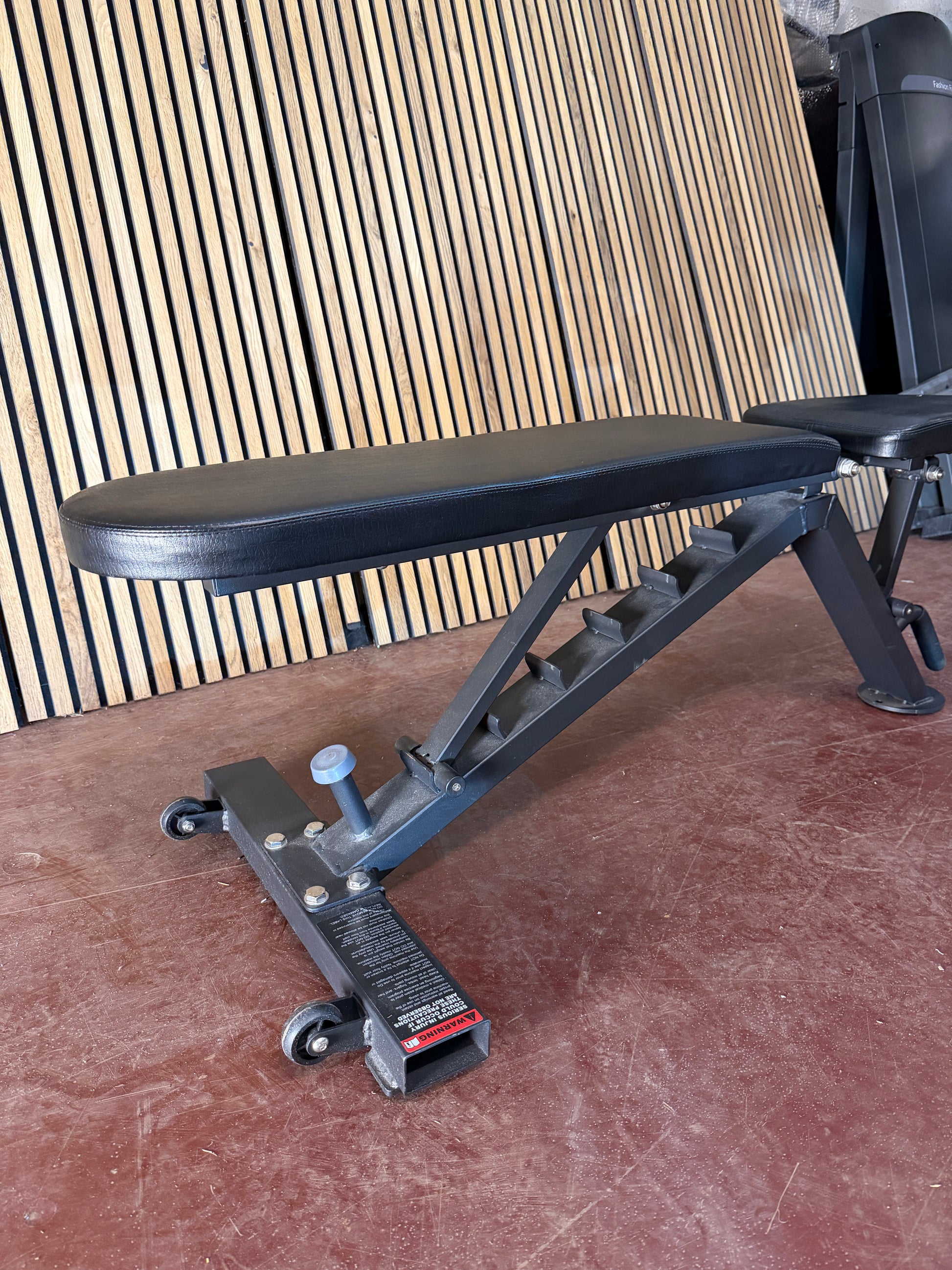 Stabile, mehrfach verstellbare Trainingsbank mit robuster Stahlkonstruktion und bequemer Polsterung. Ideal für vielseitiges Hantel- und Krafttraining im Sitzen oder Liegen. Die Rückenlehne ist in mehreren Winkeln einstellbar. Polster in gutem Zustand, Gestell mit minimalen Gebrauchsspuren. Solide Studioqualität – standfest, langlebig und sofort einsatzbereit.