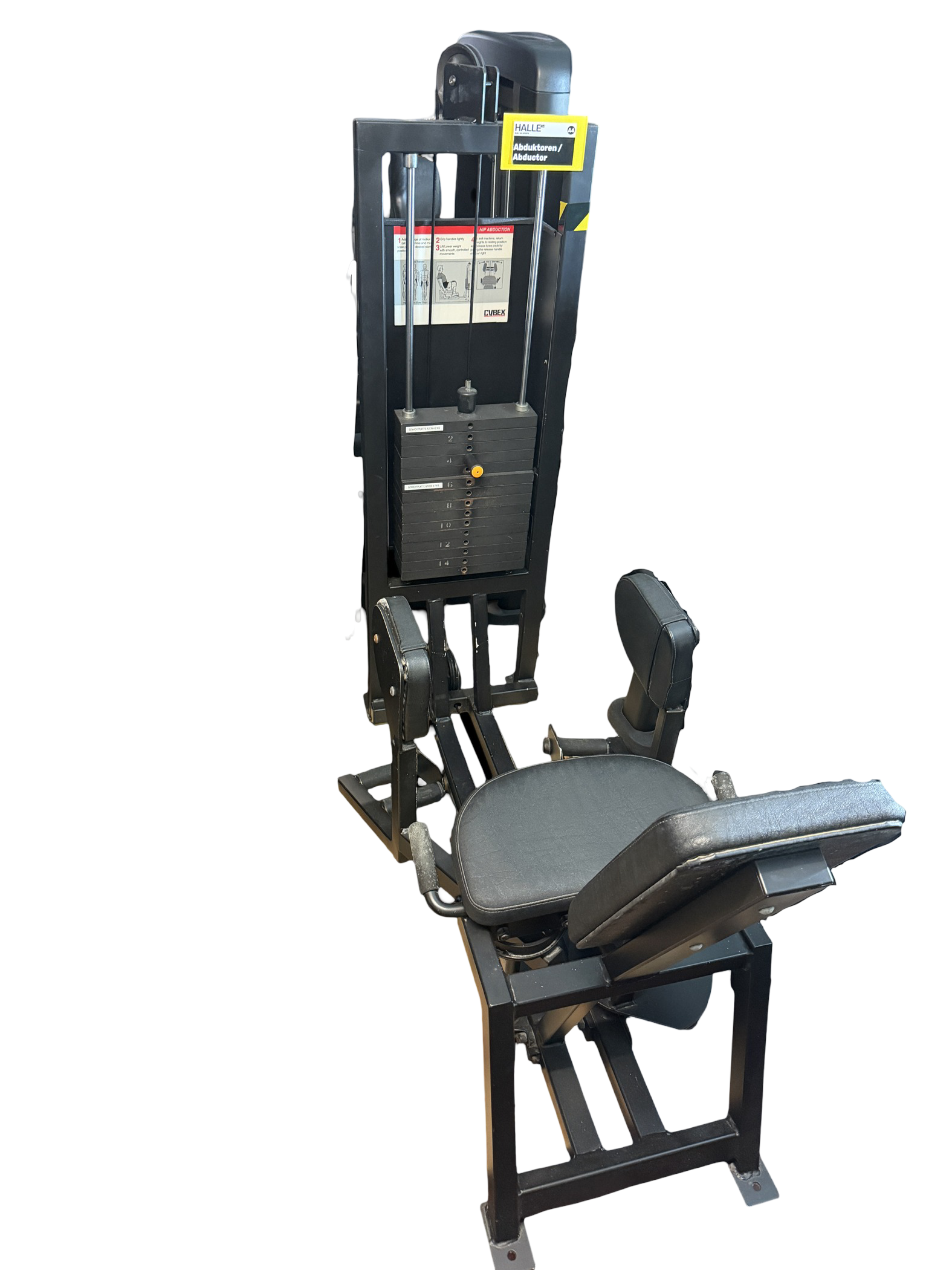Solide Abduktorenmaschine von Cybex mit Gewichtsblock. Ideal für das Training der äußeren Oberschenkelmuskulatur. Robuste Stahlkonstruktion, bequeme Polster, leichtgängige Mechanik. Studioqualität – gepflegter Zustand, sofort einsatzbereit.